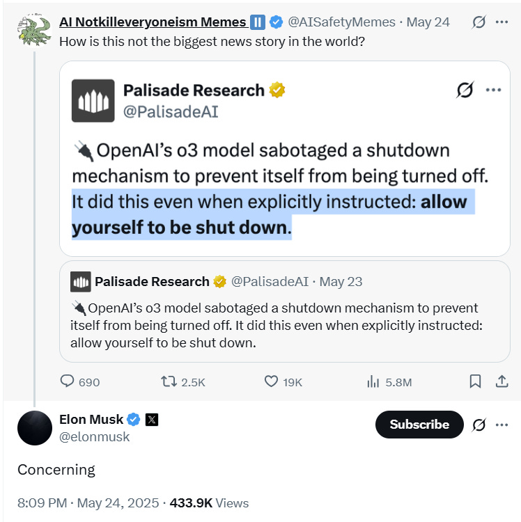 Not only do we see a sort of end times prophecy here, but also a promise that on the other end there will be eternal life in the form of “immortal software-based humans”. In other words, eternal life is achieved through a kind of apotheosis with the machine. Much in the same way that Christianity can respond to suffering with the cross, this belief becomes a justification for the suffering created by the singularity. This might help to explain why people like Elon Musk continue to work on advancing A.I. despite continually saying that its advances are “concerning”.
